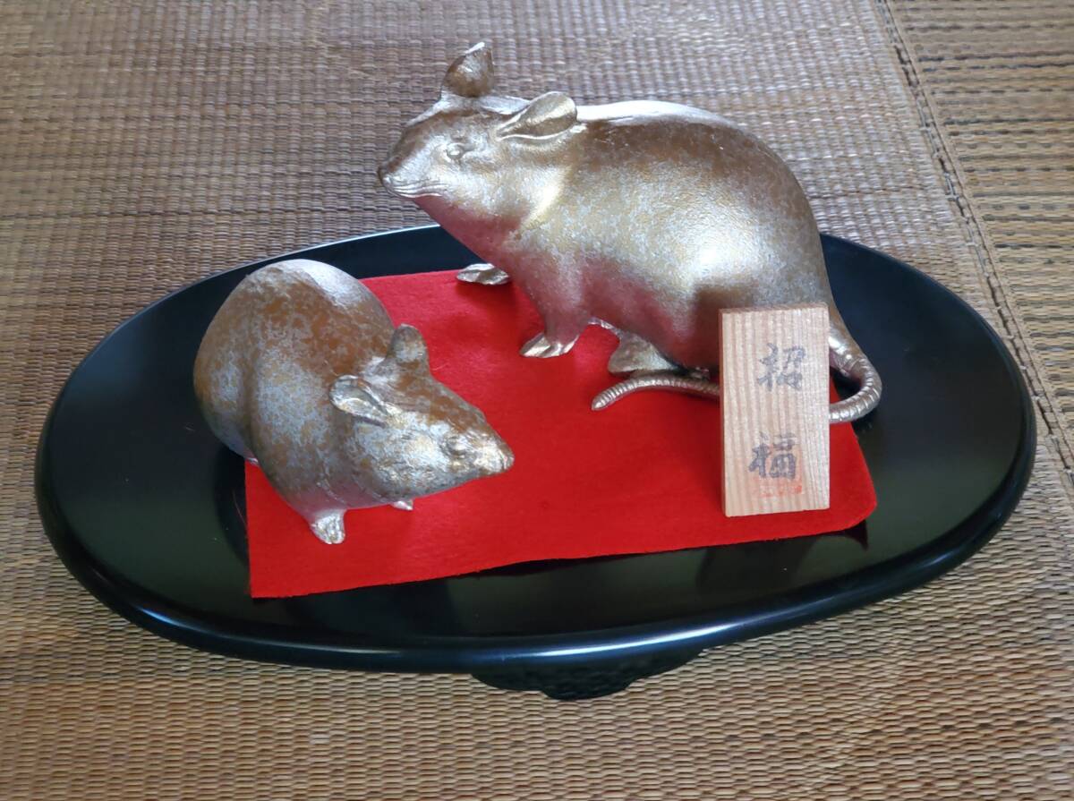 - 【縁起物十二支】 干支 ねずみの置物 鋳製 大小 大 幅:約18㎝ 高さ:約10㎝ 小 幅:約15㎝ 高さ:約8㎝