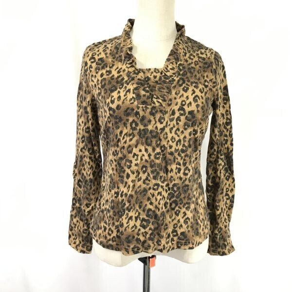 > タグ付き未使用★日本製★LUMI GRACE/ルミグレース★長袖カットソー【レディースM/brown/茶/レオパード】ヒョウ柄/Tops/Shirts◆BH752