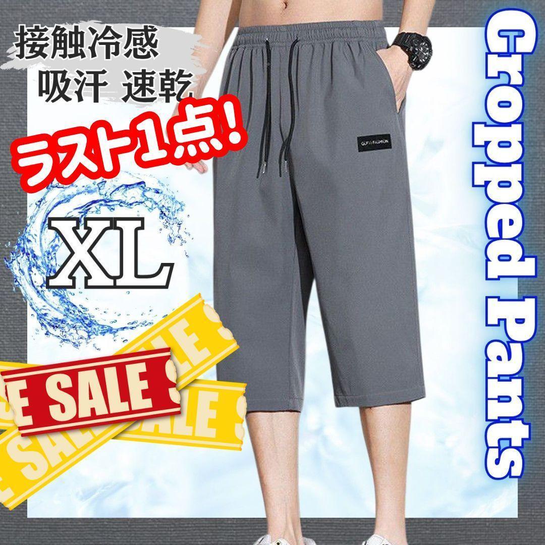 - ラスト1点! 快適素材 クロップドパンツ XL 速乾 7分丈 吸汗 ひんやり 涼感 グレー 2026