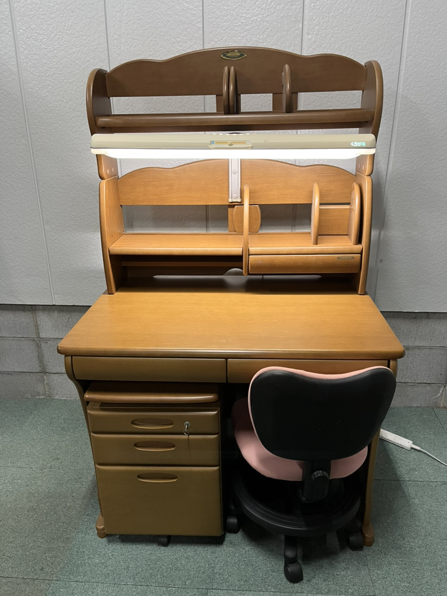 > クロガネ 学習机 勉強机 袖机 椅子付 ライト ② 幅100cm×奥行68cm×高さ159cm 直接引取(東大阪)・自社配達歓迎