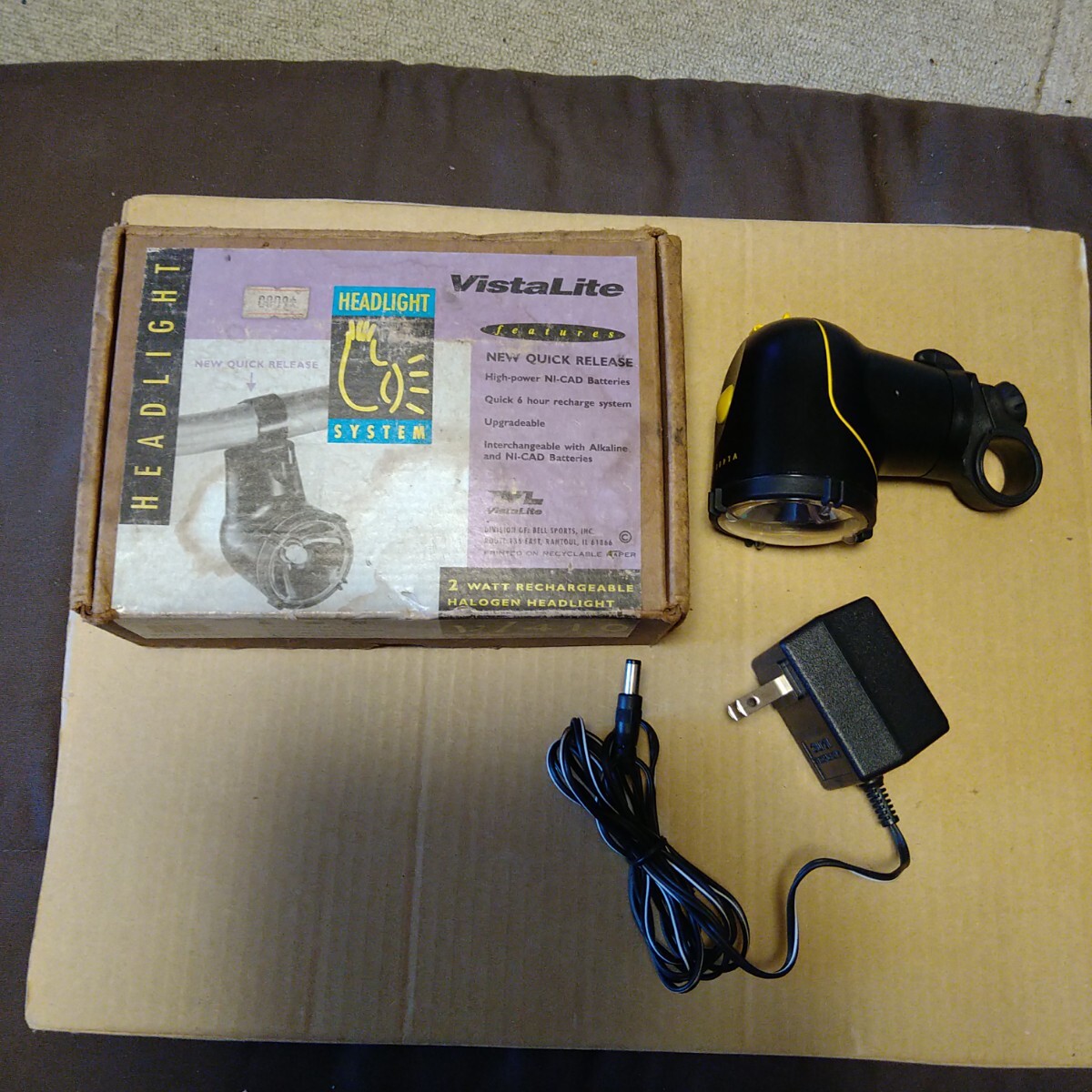> 自転車用フロントライト 家庭用電源コード付 長期家庭保管品 バッテリー充電不可 電源コードで点灯確認済 ジャンク品 現状品