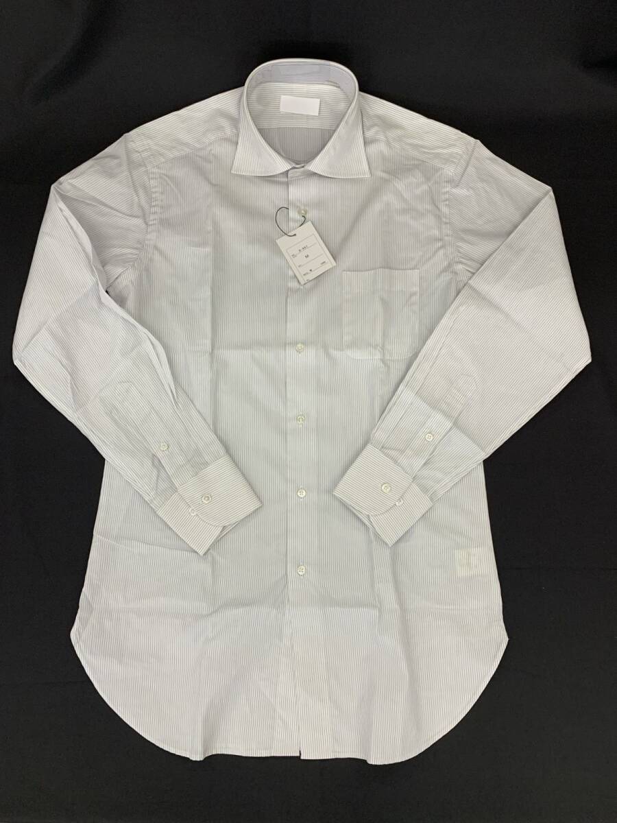 > SALE セール58%OFF新品未使用品 日本製 Lサイズ 綿100% メンズストライプ 白×青 ワイシャツカジュアルドレスシャツ D-997 139-2管49899088