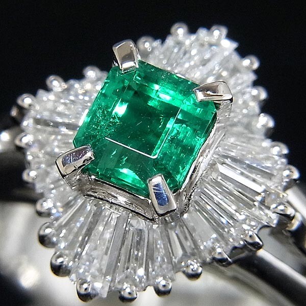 - Pt900 エメラルド指輪 E:0.37ct D:0.50ct 10号 5.5g