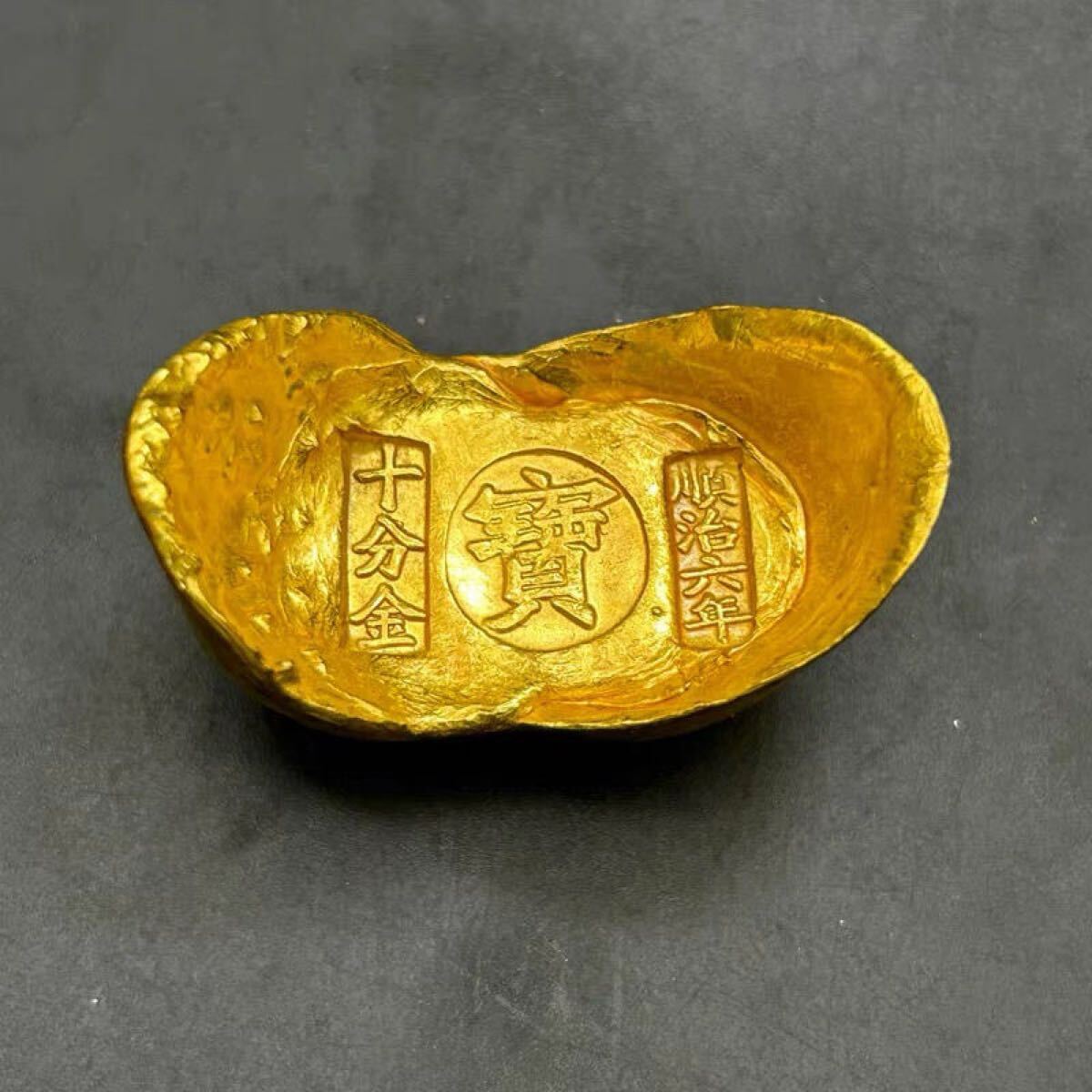 > 極美品 希少 中国 大清 順治六年 十分金 「寶」付き 元寶 金錠 金塊 海外金貨 骨董品 大型硬貨 外国金貨 硬貨 コレクション 収蔵品