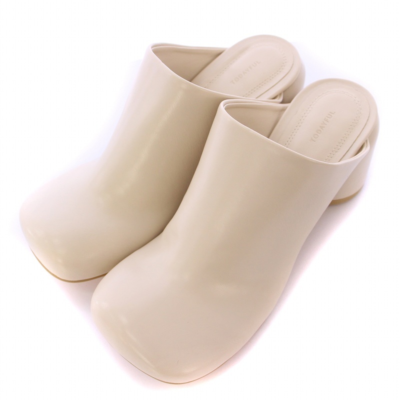 > トゥデイフル TODAYFUL Chunky Heel Sabot チャンキーヒールサボ ミュール スクエアトゥ ブロックヒール 38 アイボリー 12321004
