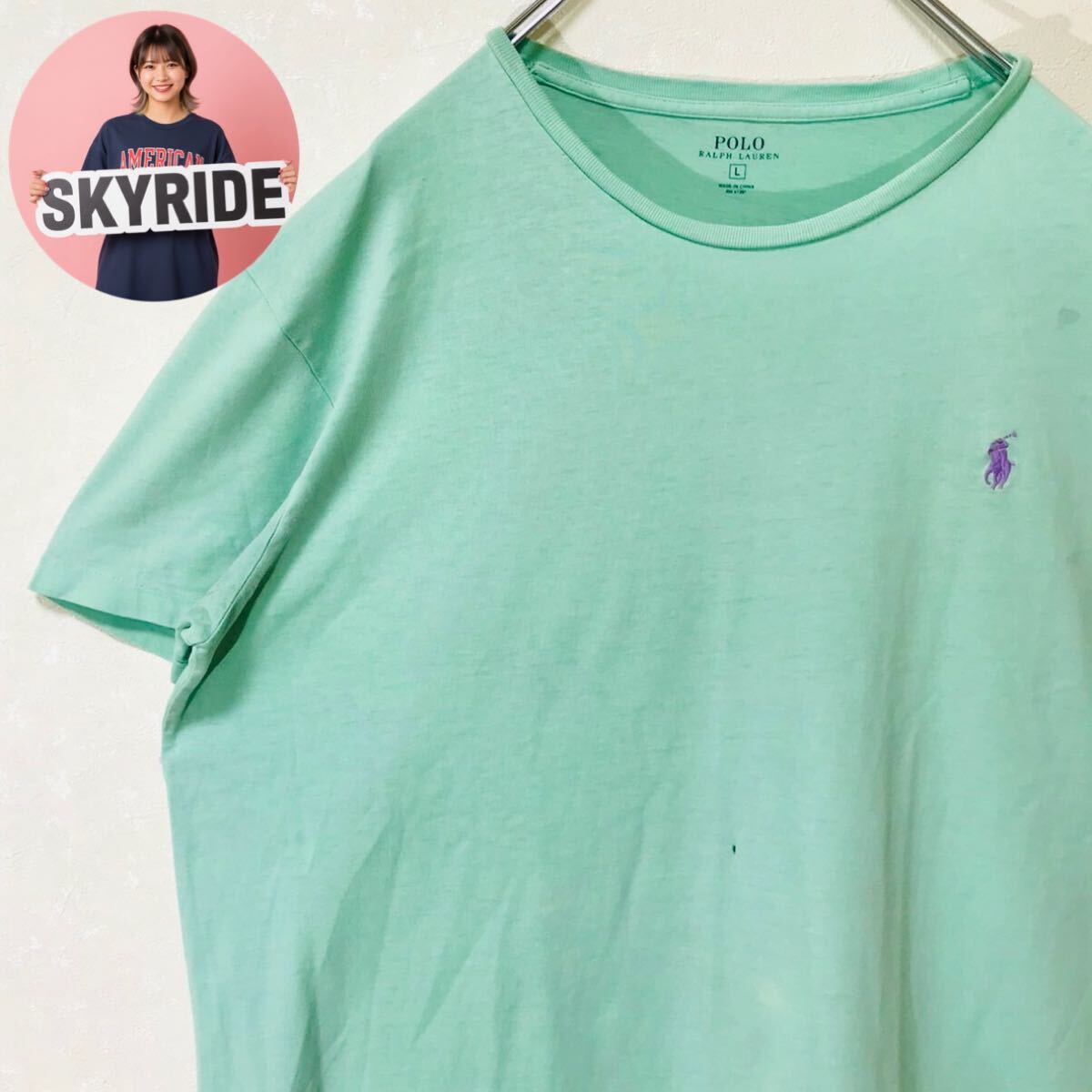 > 人気 POLO RALPH LAUREN ポロラルフローレン Tシャツ グリーン Lサイズ ワンポイントロゴ ポニー刺繍ロゴ 雰囲気系 古着 #TT0267