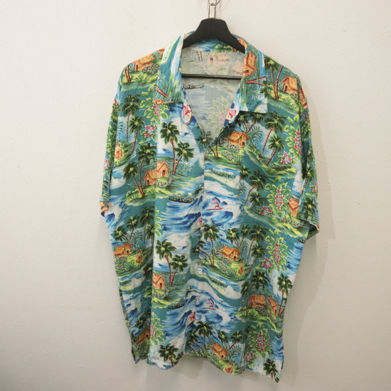 - W611 90sビンテージ 半袖アロハシャツ■1990年代製 約XLサイズくらい オープンカラー 開襟 フラガール レーヨン アメカジ ストリート 古着