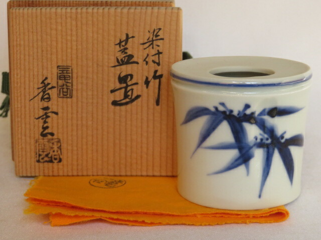 - (二月◆特売品)平安竜谷焼 宮川香雲作 染付 竹蓋置 茶道具【中古・美品】