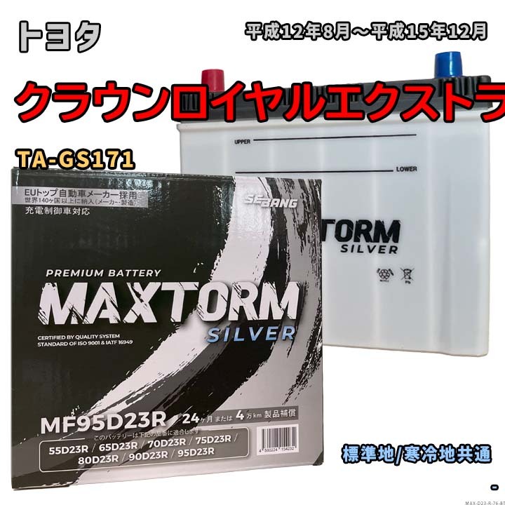 - バッテリー MAXTORM MAX-MF95D23R トヨタ クラウンロイヤルエクストラ TA-GS171 平成12年8月~平成15年12月 マルチビジョン D23Rタイプ 76
