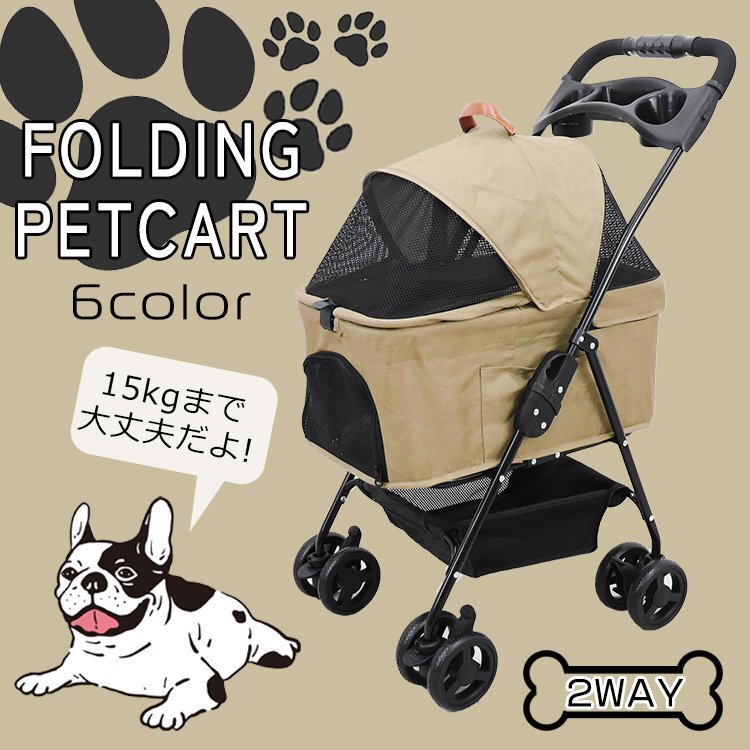 - 【取り外しタイプ/ベージュ】ペットカート 折りたたみ 小型 ペット ペット用カート 中型 軽量 高機能 犬 猫 小動物 散歩 耐荷重15kg