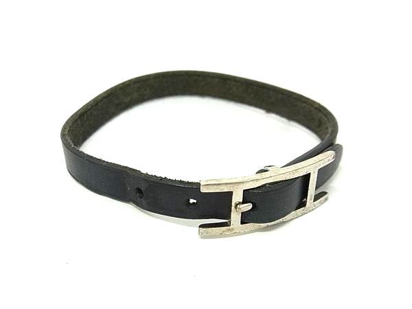 > エルメス ブレスレット アピ3 レザー - シルバー金具 ブラック バングル アクセサリー ブランド 小物【本物保証】