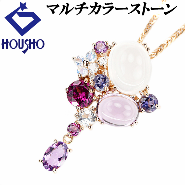 > クォーツ ネックレス ダイヤモンド アメジスト マルチカラーストーン K18ピンクゴールド 送料無料 中古 宝正 901401