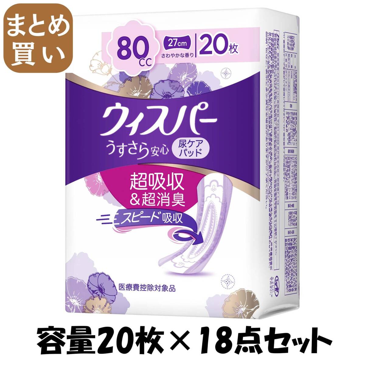 - 【まとめ買い】ウィスパ- うすさら安心 安心の中量用 80cc 20枚 容量20枚×18点セット P&G 大人用オムツ