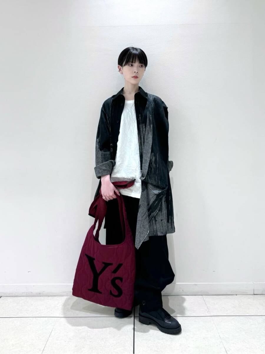 > 美品 ワイズ Y's ヨウジヤマモト 24AW シャンブレー ドレープブラウス 1 L/C CHAMBRAY LOGO SCRIBBLE PT LEFT DRAPE BLOUSE