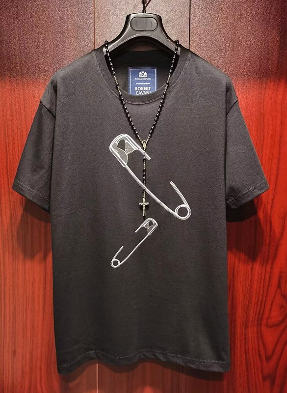 > 最高級※定価4万◆イタリア・ローマ発*ROBERT CAVANI/ロベルトカバーニ※セレブdesigner・Tシャツ/48/Lサイズ・黒