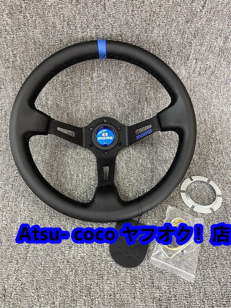 > 新品 13インチ レザー レーシングステアリングホイール blue 320CM 汎用 クスステア リングホイール