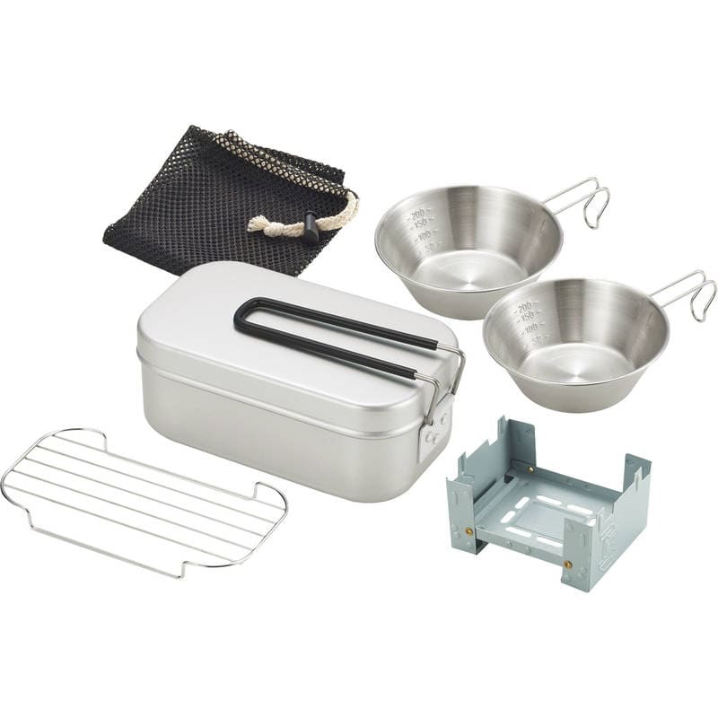 ▼▼▼▼▼▼注意事項▼▼▼▼▼▼・送料込み(送料800円が商品価格に含まれています) 一部地域では追加送料あり。・お取り寄せ商品です。弊社にて手配後、メーカー・卸業者からの直送になります。・まれにメーカー欠品、出荷遅延等が発生致します。問題発生時は別途メールにてご連絡致します。・配送方法の指定、日時指定、置き配、ギフト対応、他商品との同梱配送などは対応できません。・まとめ買いや複数購入の場合は通常より発送に時間が掛かる場合がございます・複数個口の場合、2階以上への搬入ができない場合があります。(その場合は1階での受け渡しとなります)・大型連休、お盆、年末年始などは発送をお休みさせていただく場合がございます・メーカー都合により、パッケージは予告なく変更される場合がございます・梱包用のダンボールはリサイクル品を使用させていただきます。・注文に関するご連絡(注文確定通知・発送通知など)はメールでご案内させていただきます※商品ページの内容について、少しでもご不明な点などがございましたら購入前に一度ご連絡ください▲▲▲▲▲▲注意事項▲▲▲▲▲▲〇商品説明様々な料理が楽しめる調理セット。簡易コンロやシェラカップも入っているので、これ一つで料理が完成します。〇商品仕様【パッケージサイズ】235×80×185mm【内容】メスティン:98×290×66mm・750mL(収納時:98×176×70mm)、シェラカップ:300mL×2、簡易コンロ・メッシュトレー・収納袋【材質】アルミニウム【生産国】中国【パッケージ形態】化粧箱入(出典:タマハシ(Tamahashi))