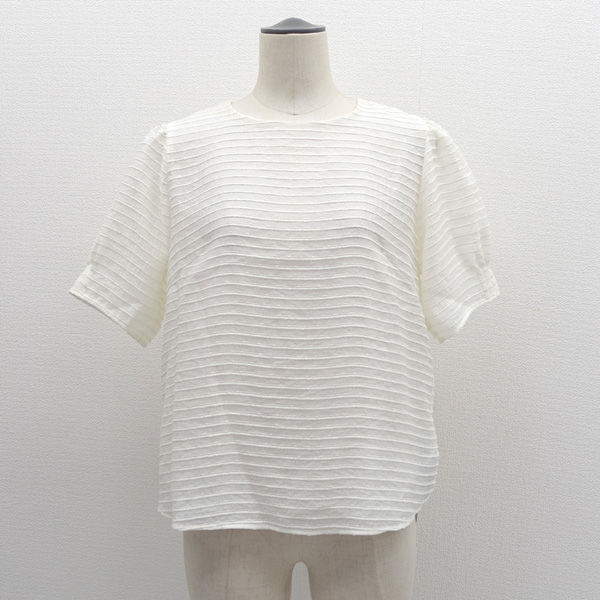 > ★ リフレクト トゥインクルボーダーブラウス ホワイト タグ付き サイズ38 101-82550 (0220530360)