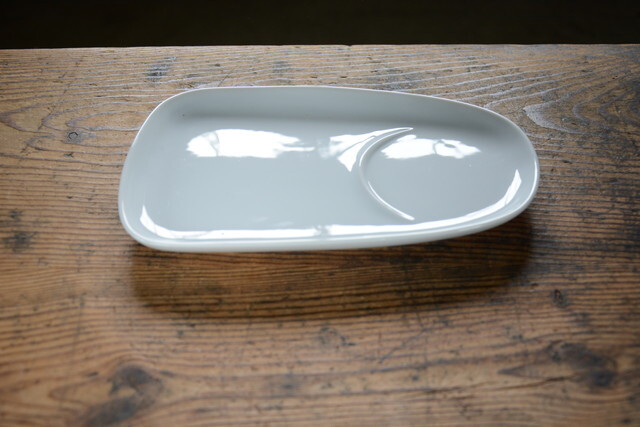 - NO.140 古い白磁のモーニングプレート 未使用品 検索用語→A昭和レトロアンティークヴィンテージ古道具お皿仕切り皿デッドストック
