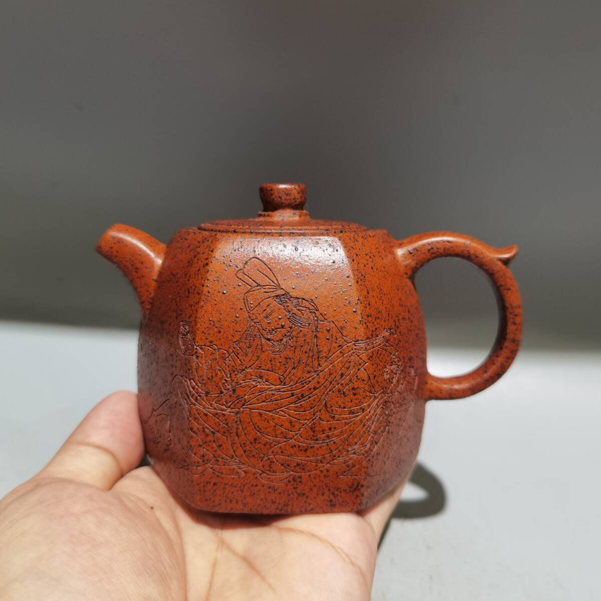 - 蔵友旧蔵出 紫砂壺 刻字井欄壺 顧景舟款 原礦龍骨金砂 盒付 茶道品 煎茶道具 文房賞物 希少珍品 中国古玩 中国古美術品