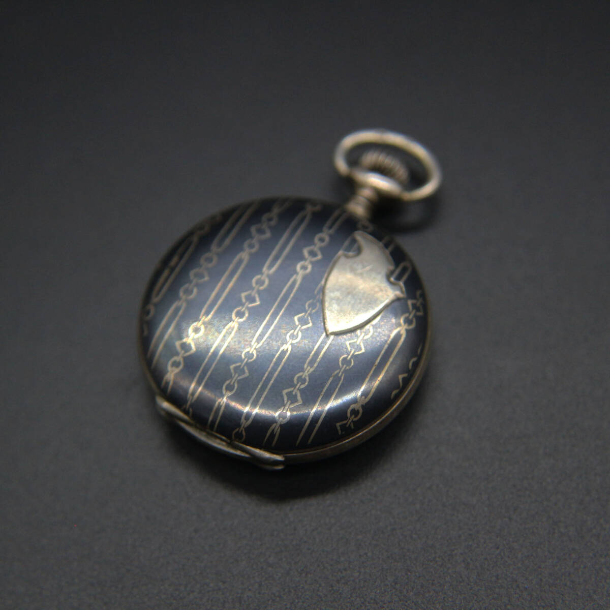 > アンティーク / 懐中時計 / ニエロ細工 / 手巻き / シルバー / 銀製 / 象嵌 / ポケットウォッチ / 古い / Remontoir cylindre 10 roubis