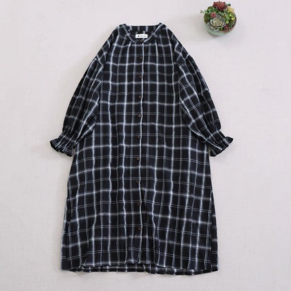 - lb 0708 カーディガン シャツワンピース フリーサイズ チュニック トップス ナチュラル 綿100% コットン 大人可愛 チェック柄2