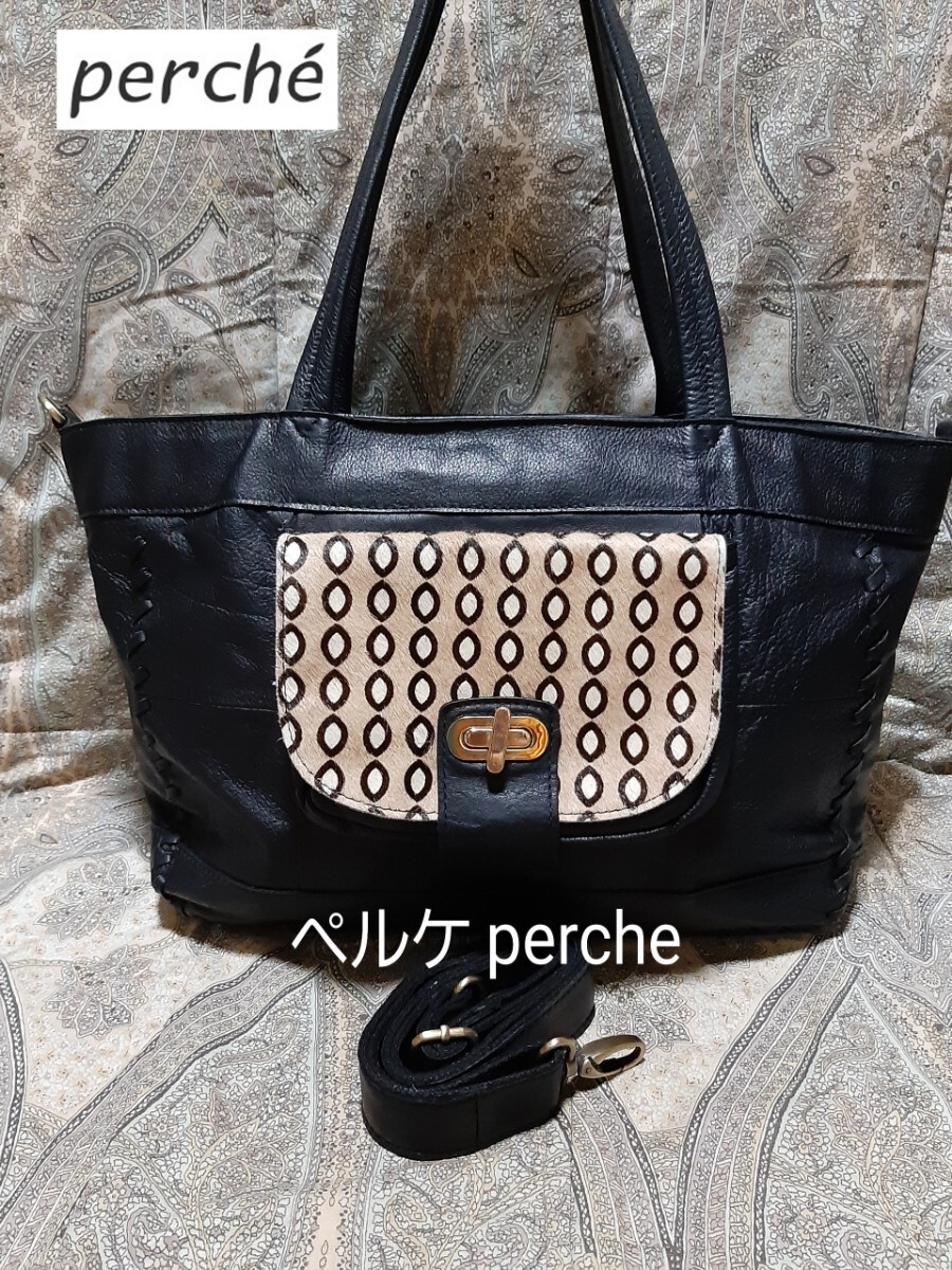 - ペルケ perche 2way/本革×ハラコ革/斜め掛けショルダーバッグ