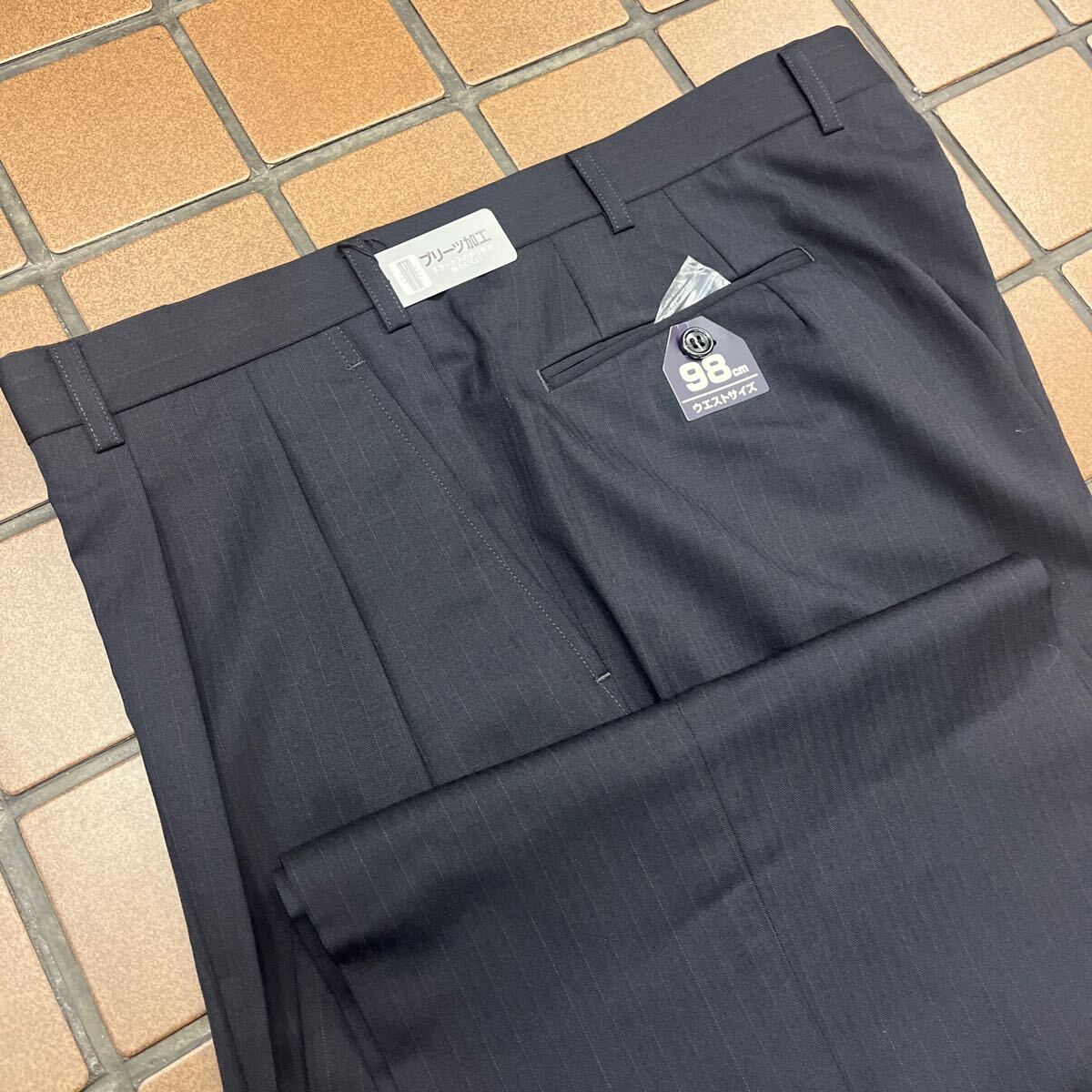 - 新品☆人気 ウール100% W98cm ネイビー スラックス カジュアルパンツ ゴルフウェア GOLFパンツ 2タック ストライプ ふわふわ生地