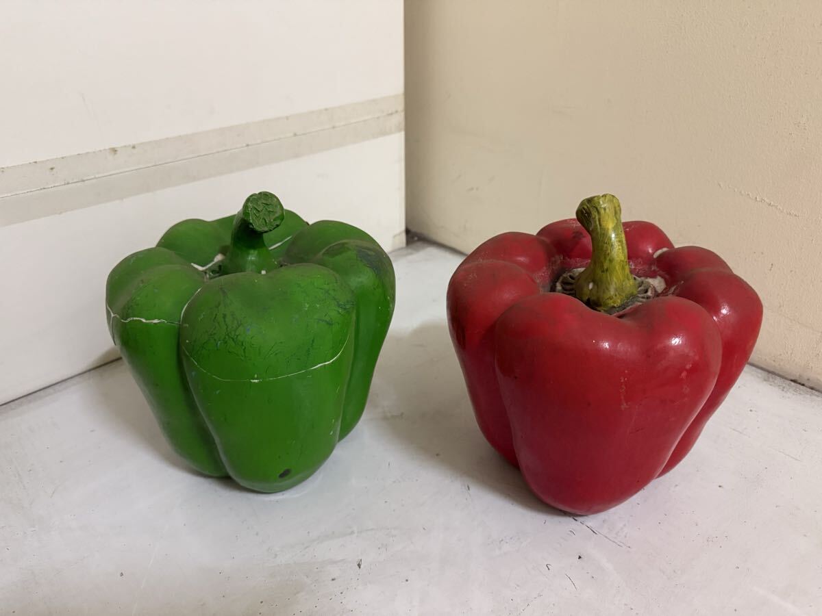 - 野菜 オブジェ ピーマン パプリカ 赤 レッド 緑 グリーン 置物