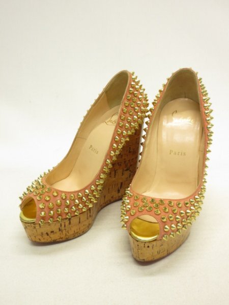 > クリスチャンルブタン★スパイクスタッズ ウェッジソール スエード オープントゥ パンプス サイズ35.5(23cm位)★Christian Louboutin