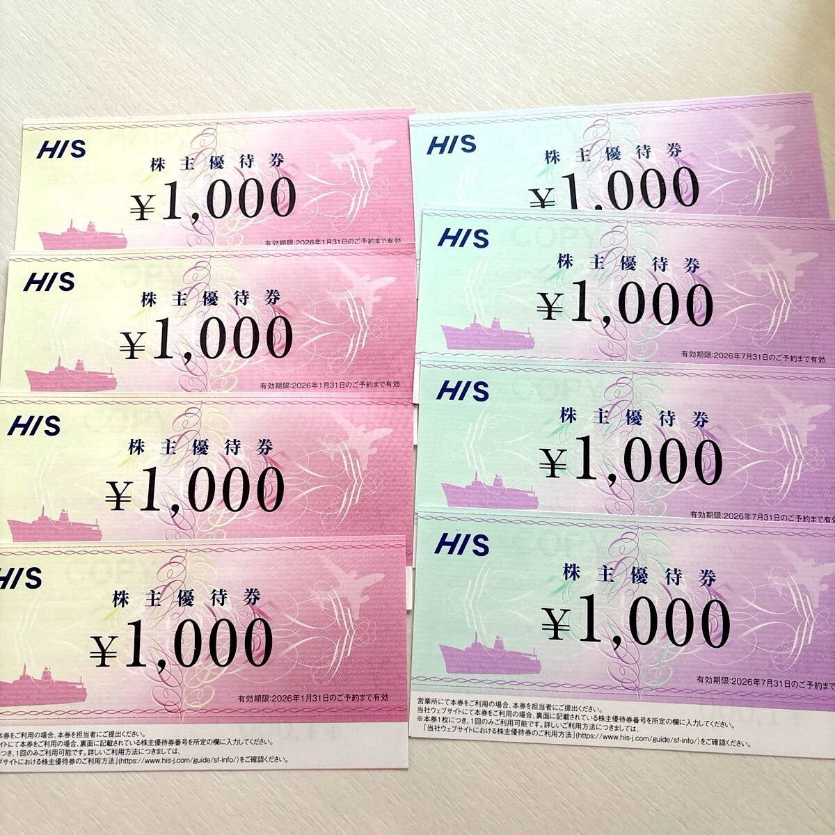 - HIS株主優待券 8枚 2026/7/31 2026/1/31 エイチアイエス