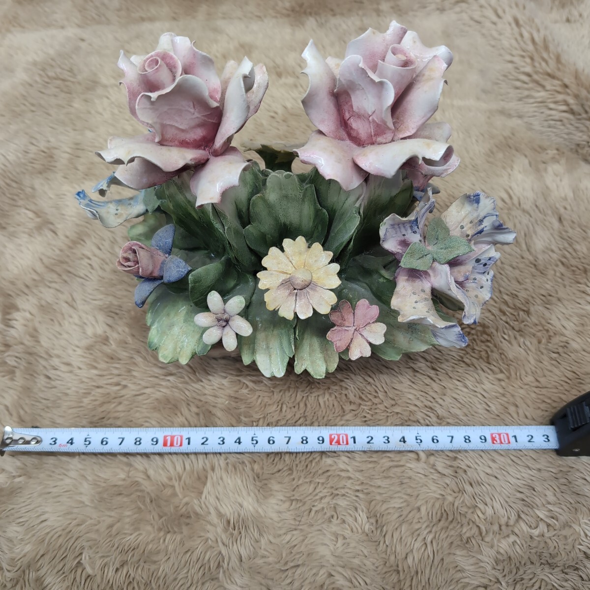 - カポディモンテ 陶花 陶器 置物 花 バラ 薔薇 飾り 玄関飾り イタリア製 フラワー インテリア オブジェ1円スタート1スタ