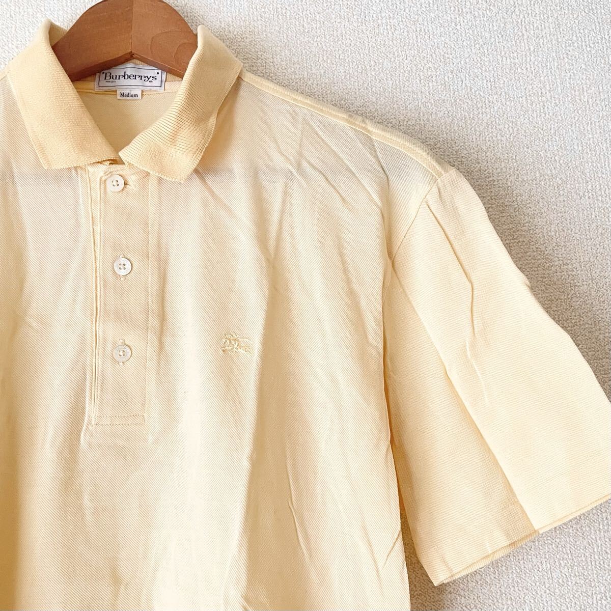 - バーバリー Burberry's 半袖ポロシャツ M★パステルイエロー 無地 刺繍 ロゴ 古着 黄色 綿100% コットン イギリス ビジネス カジュアル