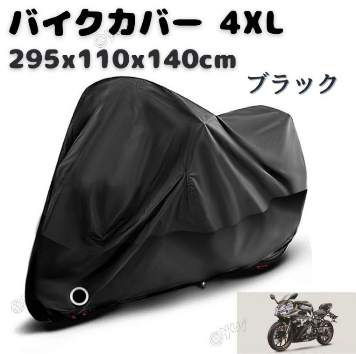 - バイクカバー ブラック 4XL 厚手 防風 防水 撥水 耐熱 耐寒 UVカット 大型 中型 高品質 軽量 コンパクト 盗難防止