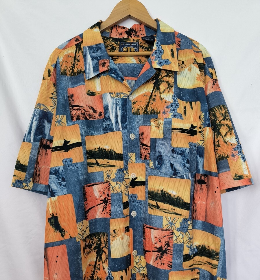 - 500スタ☆ ONE TOUGH BRAND アロハシャツ ハワイアンシャツ 半袖シャツ 開襟 オープンカラー 夕日 風景 メンズ XLサイズ 1300