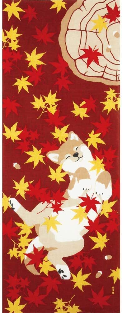 - 濱文様 絵手ぬぐい もみじと柴犬 秋 手拭い クリックポスト対応