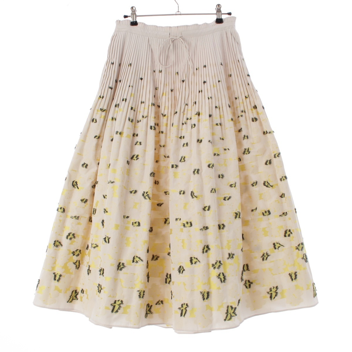 - ドゥロワー 25SS タフタ素材 RESORT2 ジャガードプリーツ スカート 6524-299-1883 オフホワイト イエロー モスグリーン 36【中古】