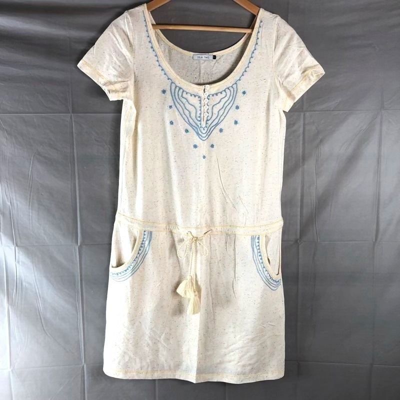 - ドゥートゥー DEUX TWO ワンピース チュニック ウエストフリンジ 刺 白 ベージュ Sサイズ 2025071200188