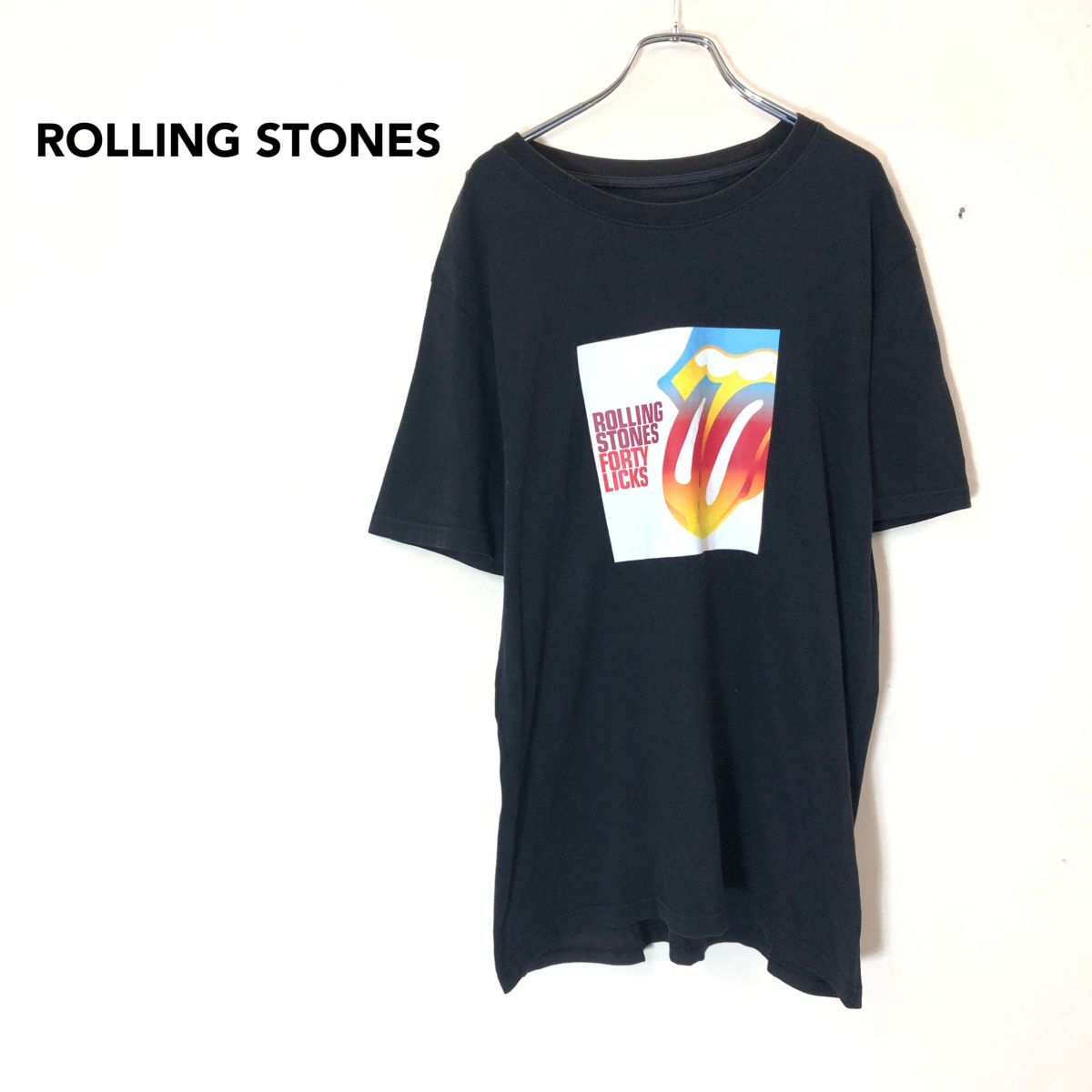 > 2S3455-O◆The Rolling Stones GU ザ ローリングストーンズ 半袖Tシャツ バンドTシャツ ロゴ◆sizeXL ブラック コットン