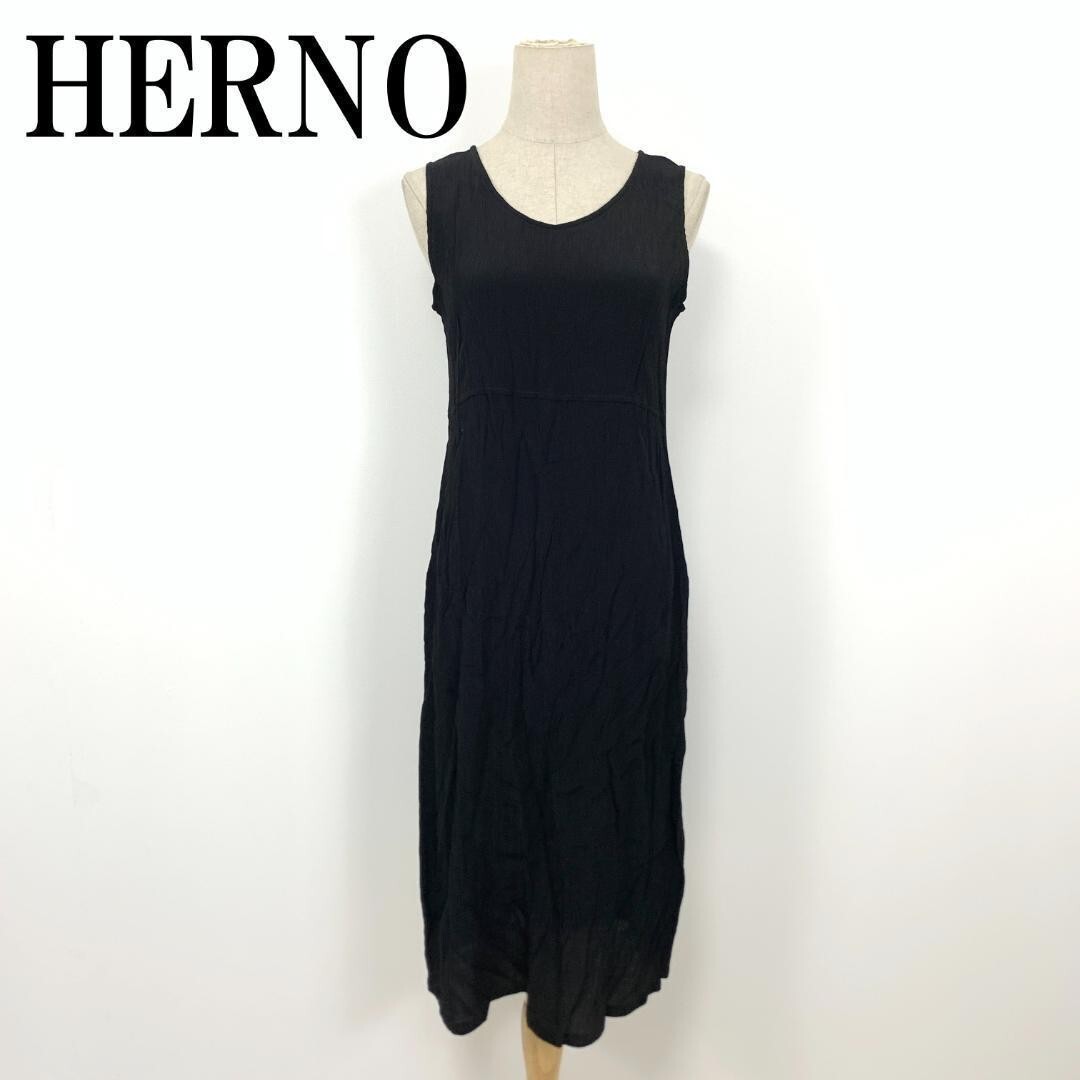 - LA7142 ヘルノ レーヨン ノースリーブロングワンピース HERNO しわ加工 透け感有ブラック 42