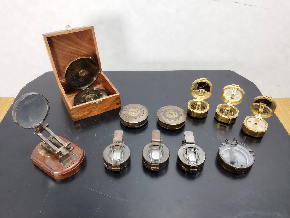 - ☆483 STANLEY LONDON 他 アンティーク ポケットコンパス 真鍮製 10点セット 現状品