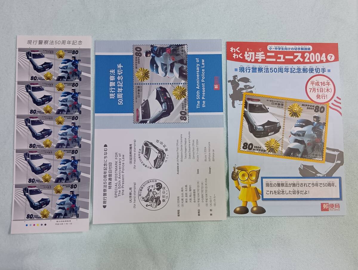 現行警察法50周年記念 H16 切手シート1枚と解説書とわくわく切手ニュース