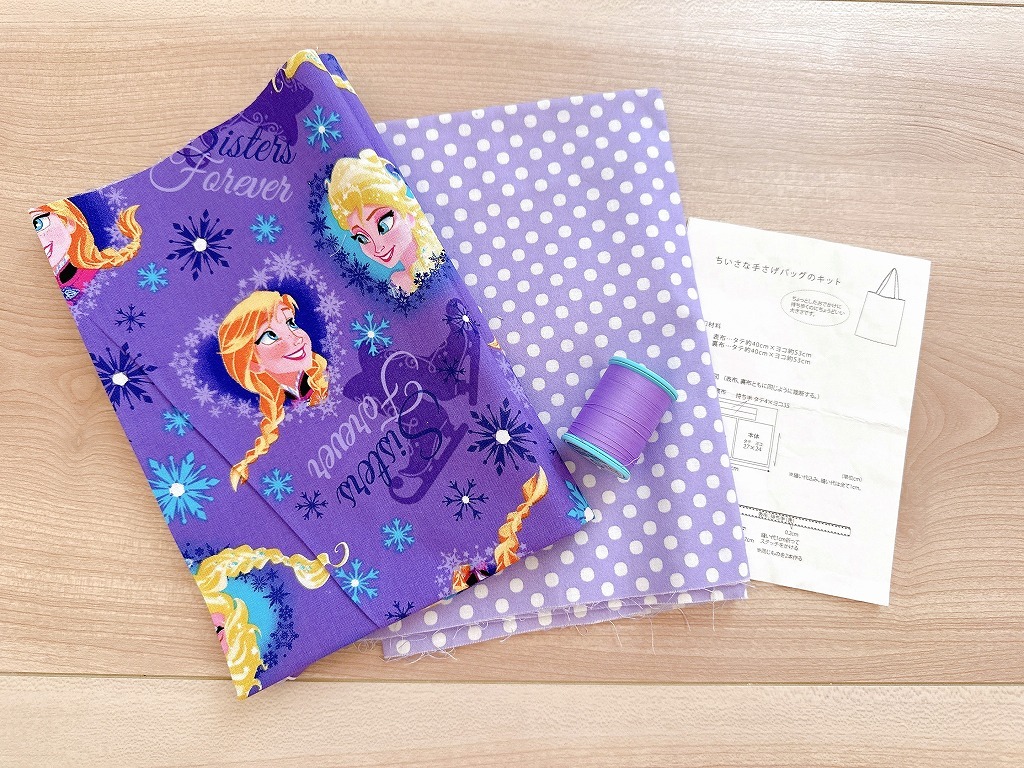 - ■手芸材料■アナと雪の女王&水玉■小さな手さげバッグが作れるセット 生地 糸付き