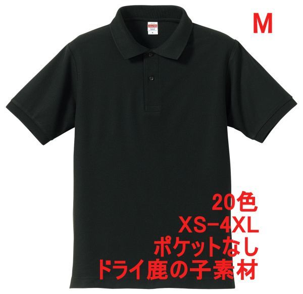 > ポロシャツ M ブラック 半袖 ベーシック 無地 鹿の子素材 ドライ カノコ 吸水 速乾 綿ポリ 胸ポケットなし シンプル A694 黒 黒色 505001