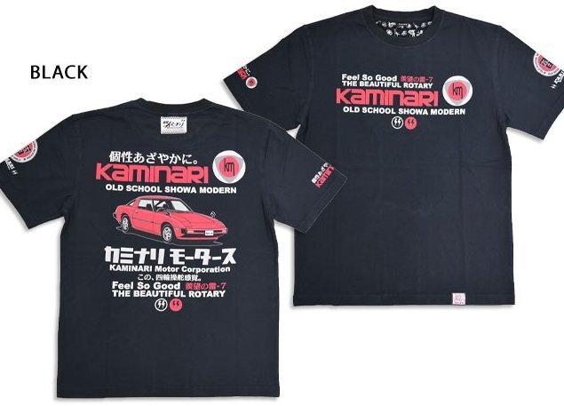> 半袖Tシャツ「POOR MAN'S PORSCHE」◆カミナリ ブラック XLサイズ 限定解除 KMT-259 雷 エフ商会 昭和 レトロ 旧車 サバンナ RX-7