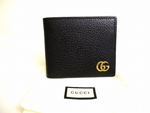 > 【未使用保管品】 グッチ GUCCI GG マーモント カーフレザー 2つ折り 札入れ 財布 コンパクトウォレット カードケース メンズ レディース