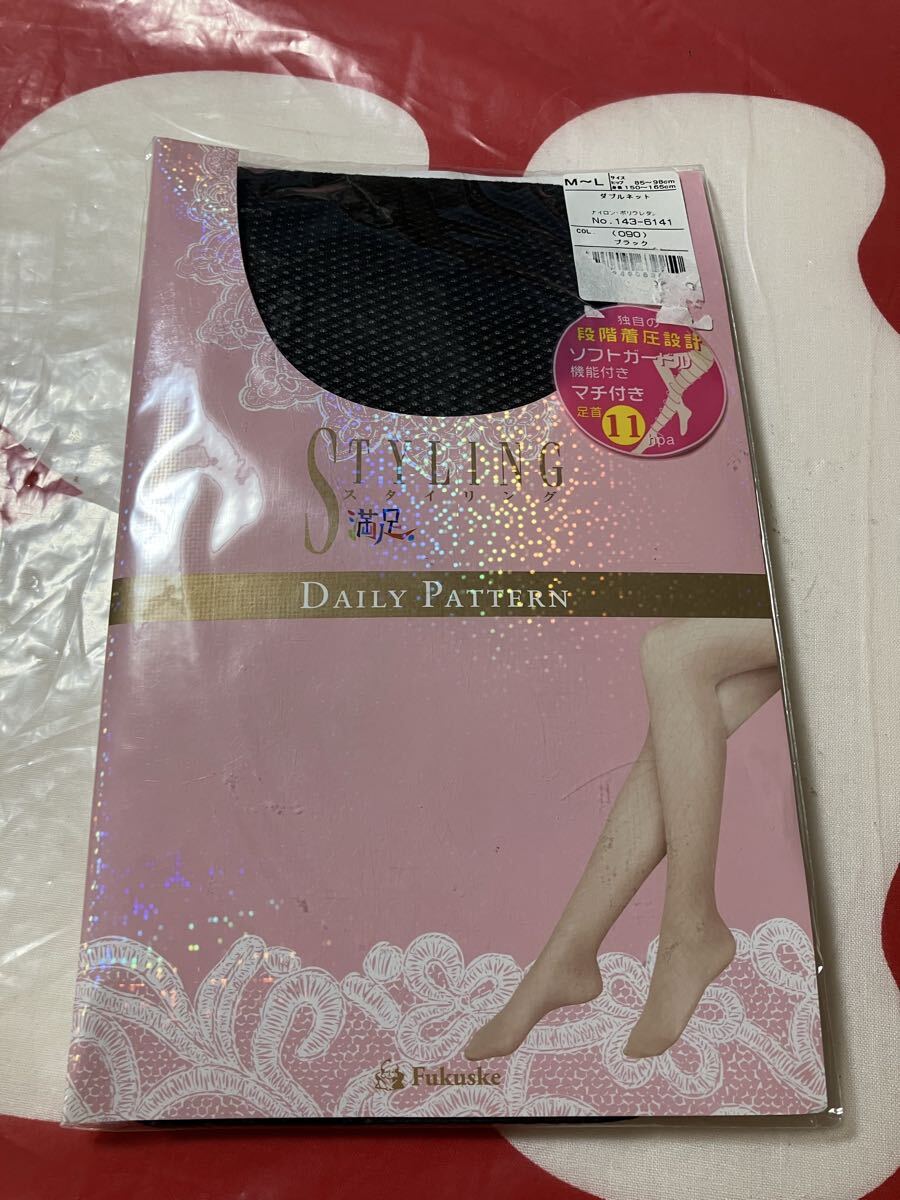 > fukuske styling満足 daily pattern ダブルネット ブラック 段階着圧 ソフトガードル マチ付 パンティストッキング パンスト pantystocking