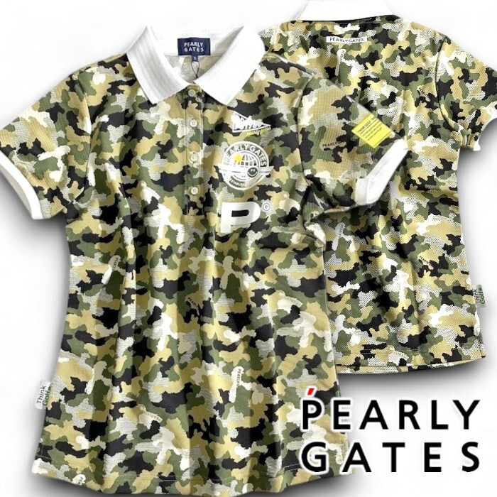 - PEARLY GATES パーリーゲイツ 定価2万 日本製 吸水速乾 ディライト 迷彩 半袖 ポロシャツ ゴルフ レディース 2160504 181 0▲023▼50804w10