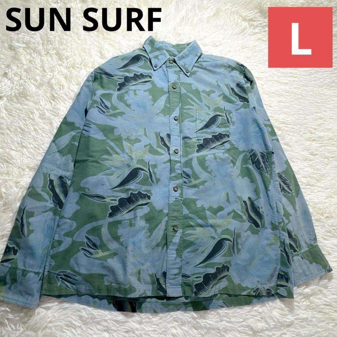 - 美品★SUN SURF サンサーフ 東洋エンタープライズ 花柄 トロピカル柄 長袖 ボタンダウンシャツ アロハ L SS23187