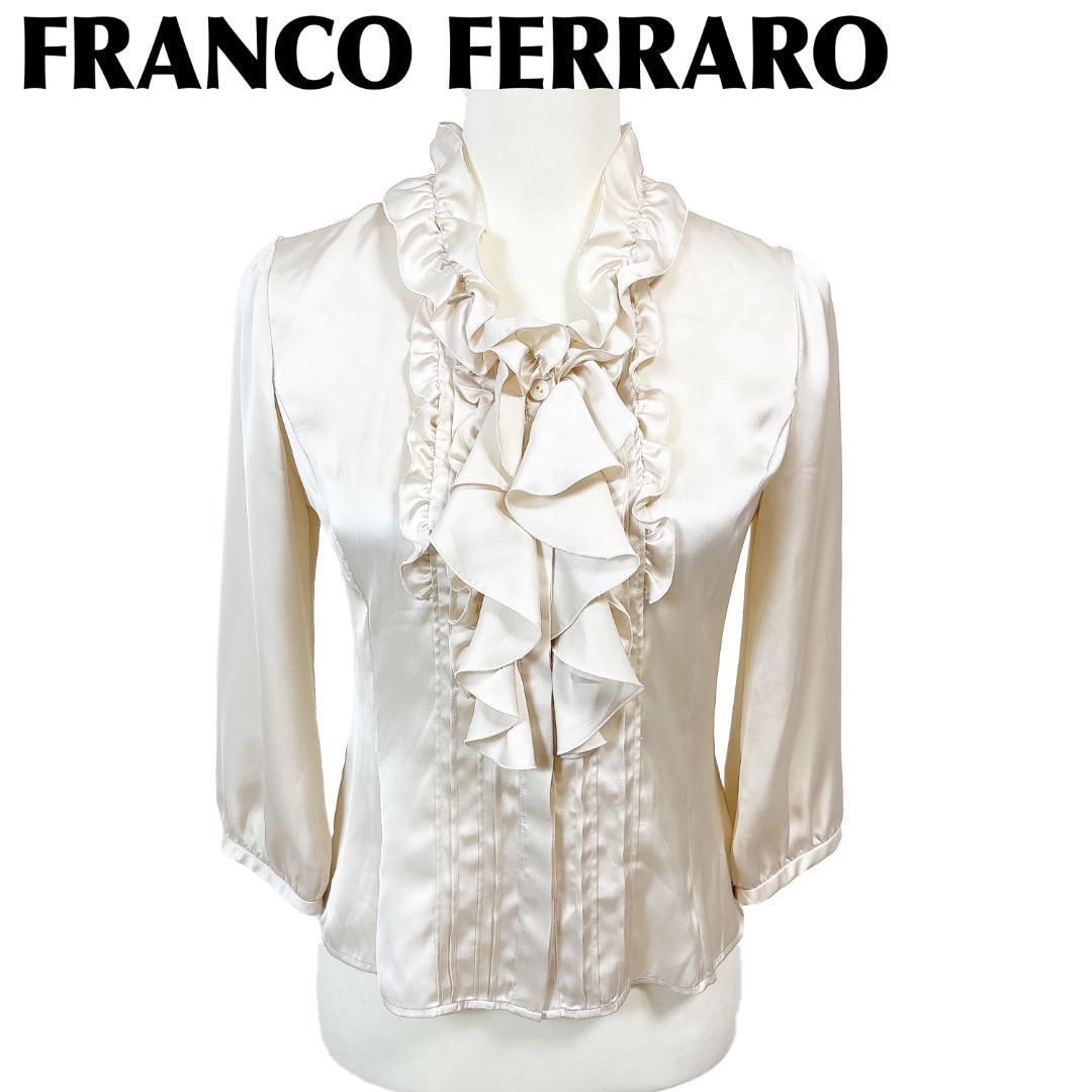- 【美品】FRANCO FERRARO 長袖ブラウス フリル 2 無地 ベージュ